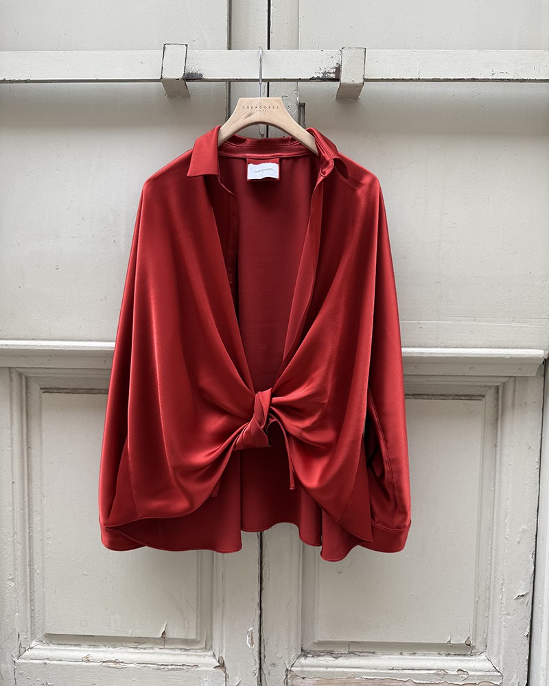 Stunning satin flared shirt with plain back and japanese sleeves.