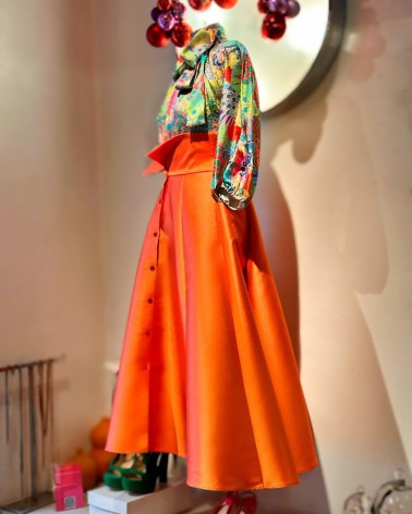 Flared Skirt in silk tafeta with high waist and side pockets