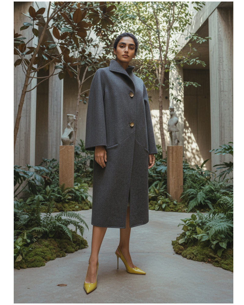 Slighly oversized wool soft line coat.