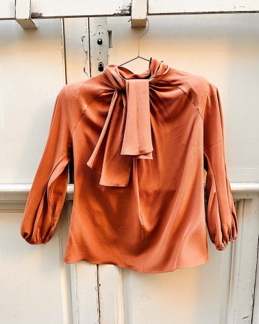 Carro Eliminar de lista Lista de deseos Vista rápida Blusa Satén drap "Pelusa" Precio 230,00 € Espectacular camisa de satén cruzada con delantero invertido y manga cucharilla Color: (Peach Fuzz)